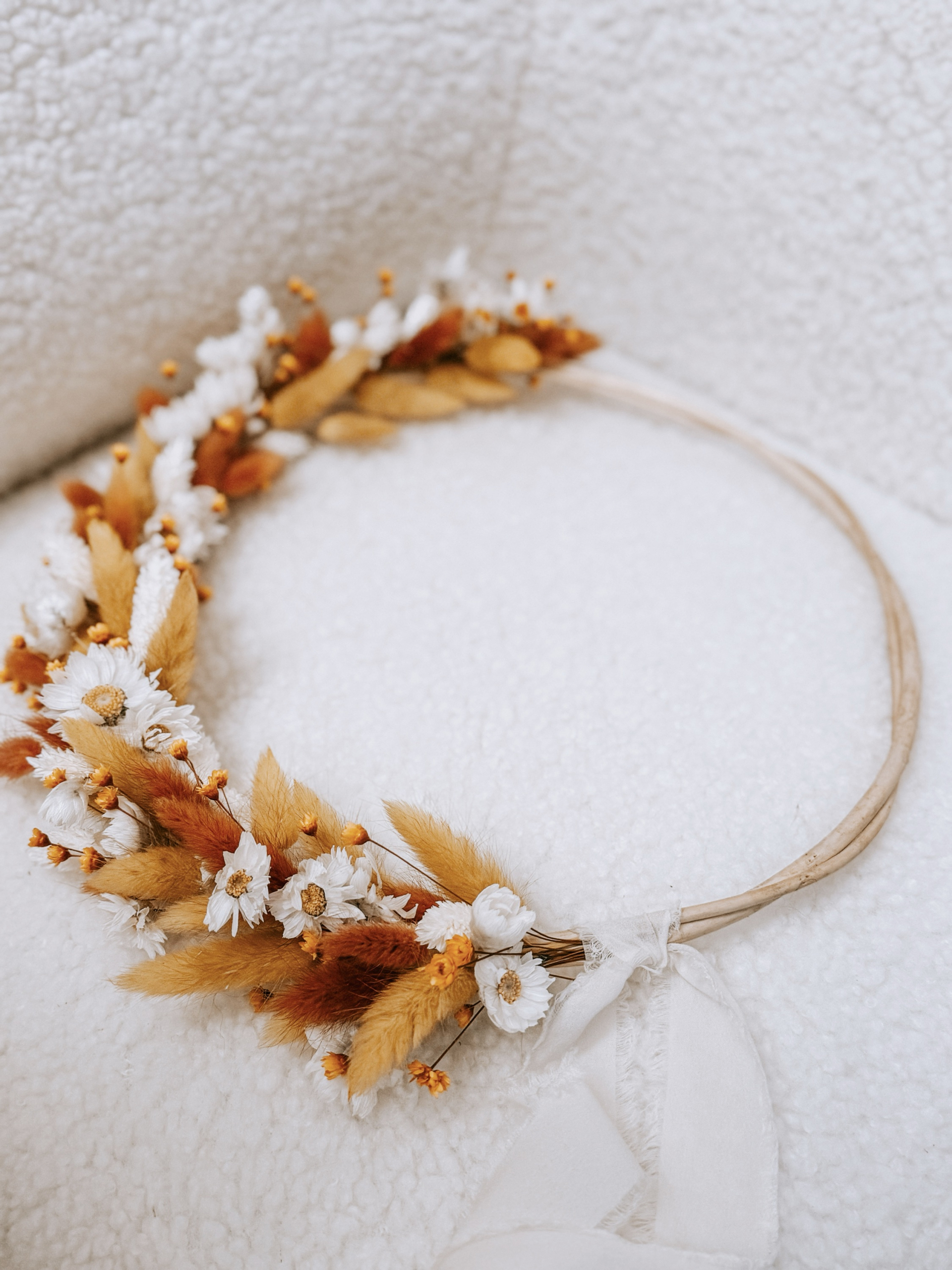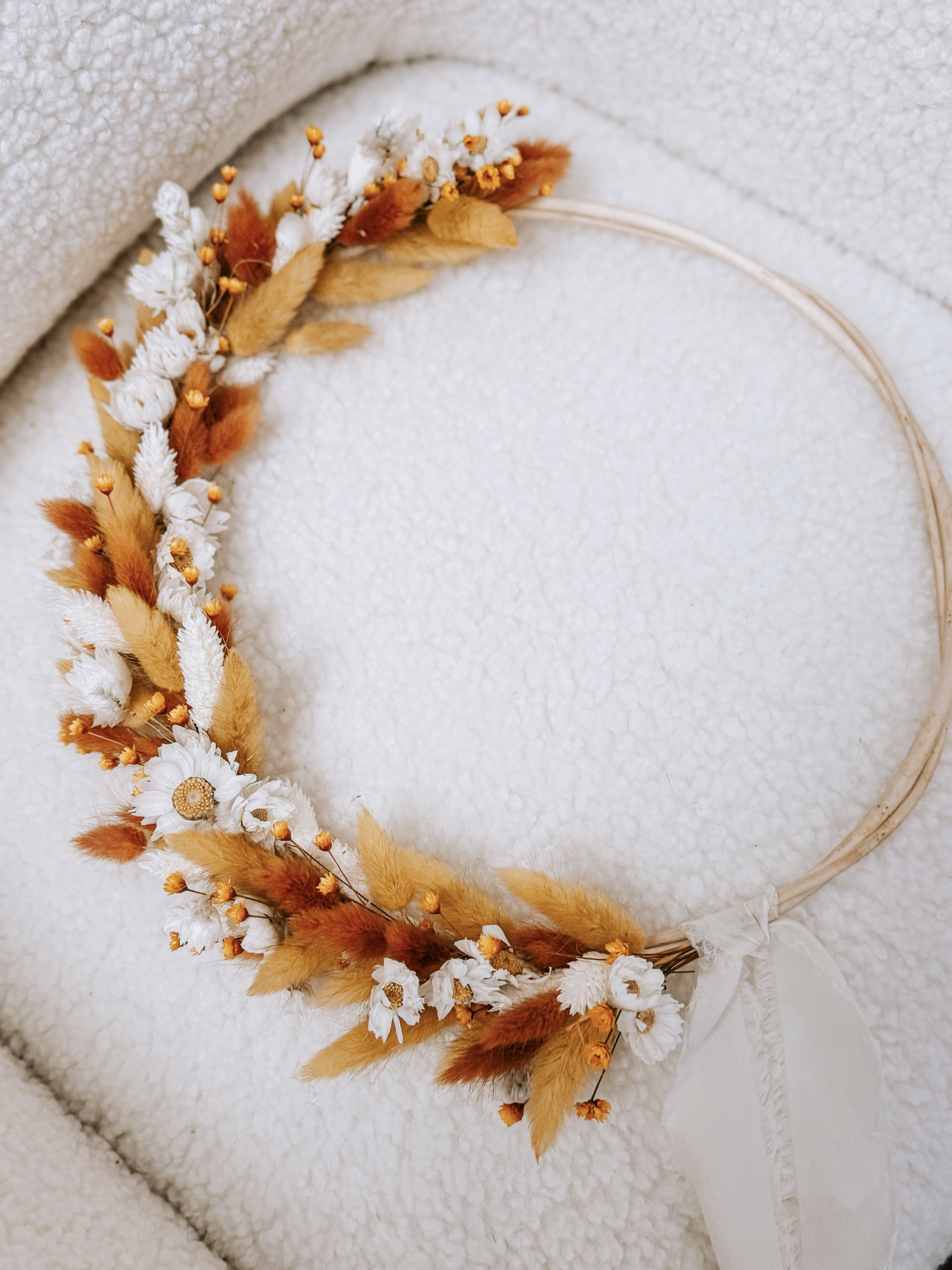 Couronne de fleurs séchées, idéale pour votre décoration d’intérieur (chambre, salon…).